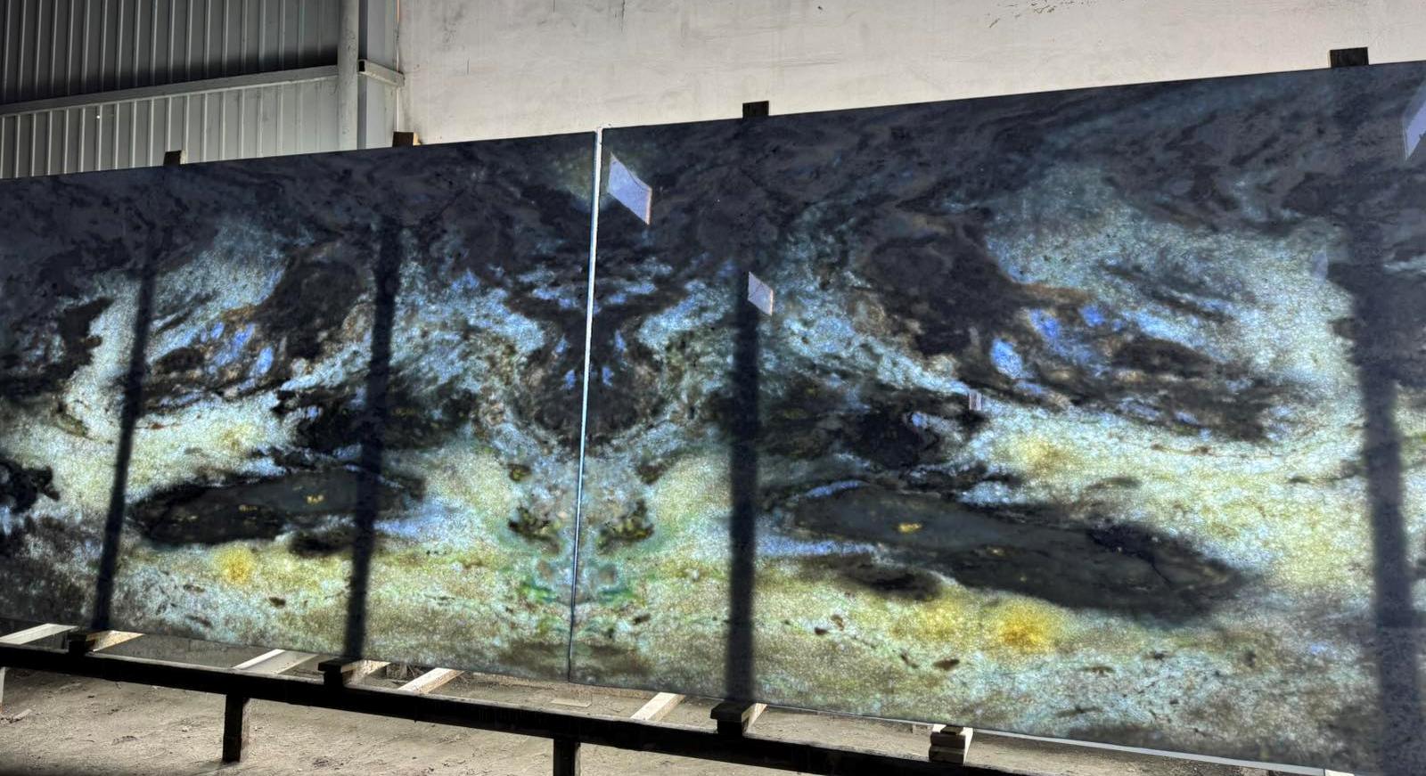 Компания предлагает слэбы мрамора Cristalitto Azul толщиной 20 мм, идеально подходящие для уникальных дизайнерских решений.