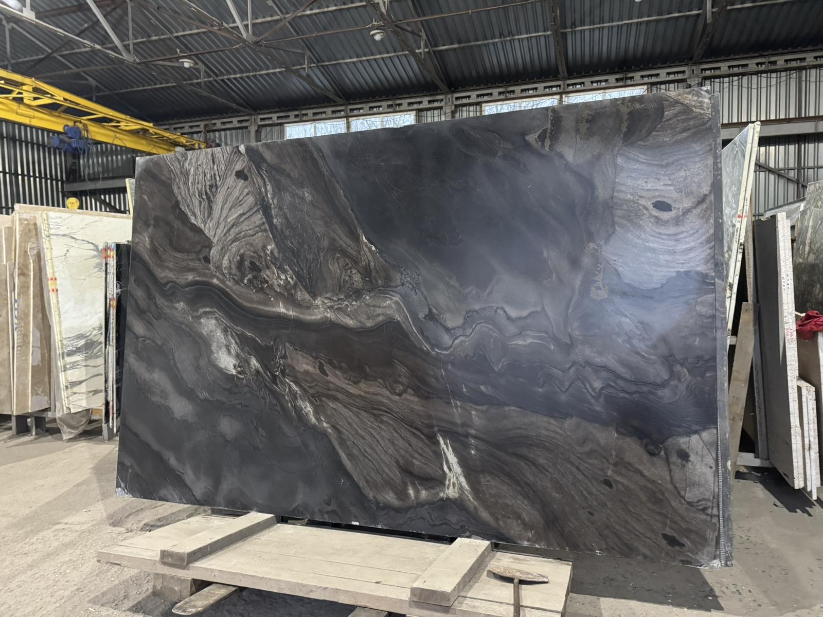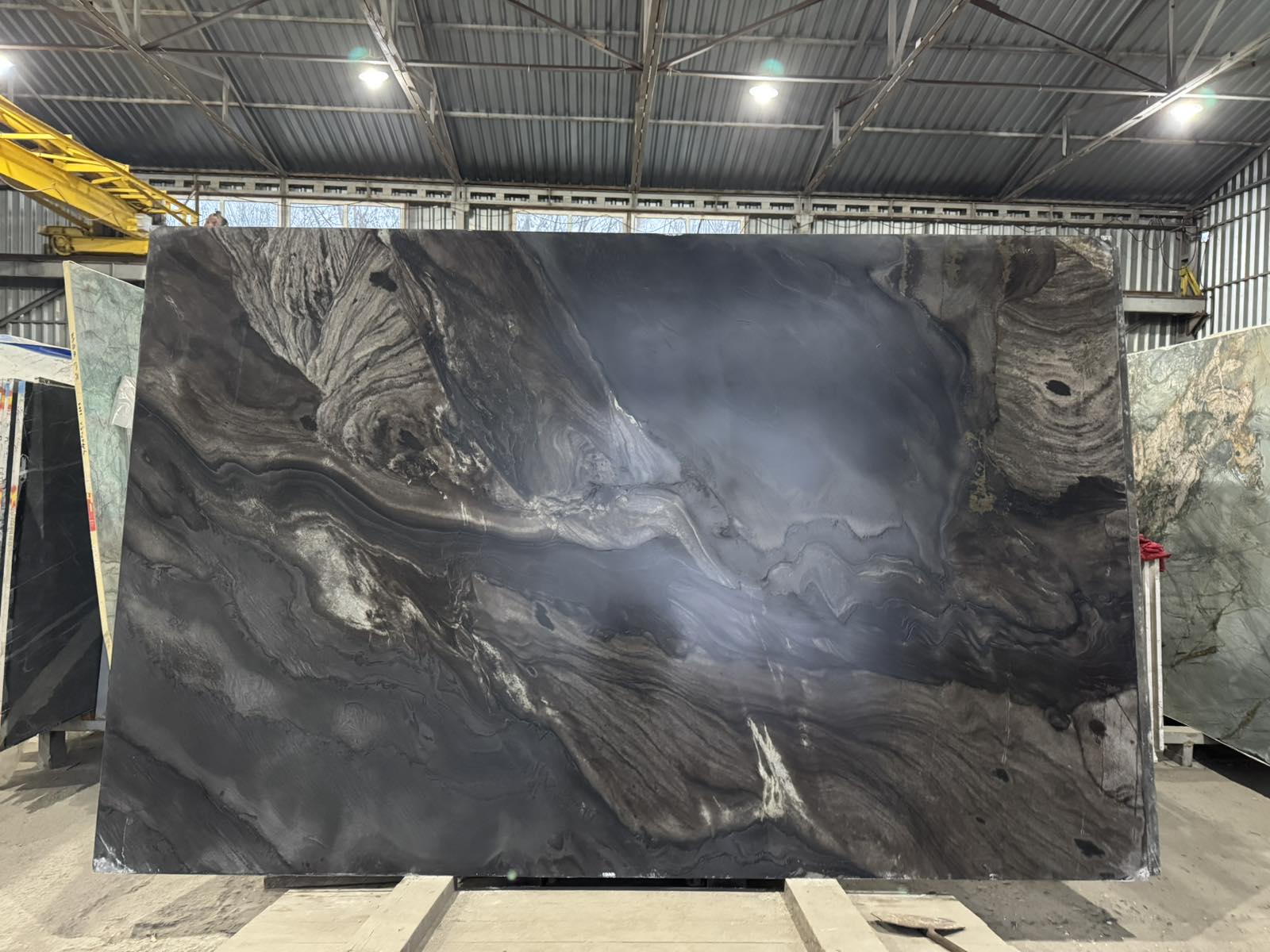 Внешний вид: Глубокий черный цвет с выраженными контрастными прожилками, создающий эффект роскоши и "темного моря".