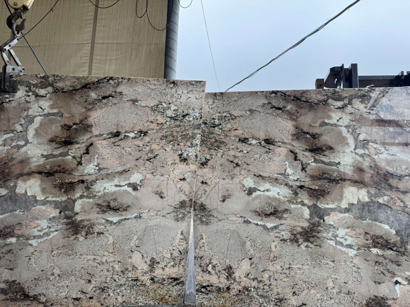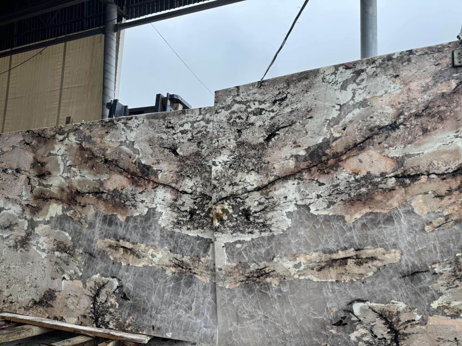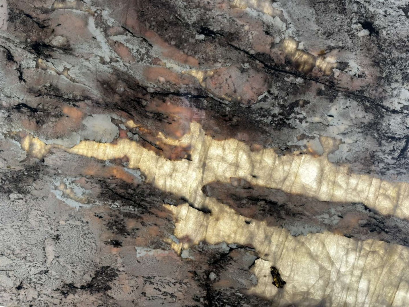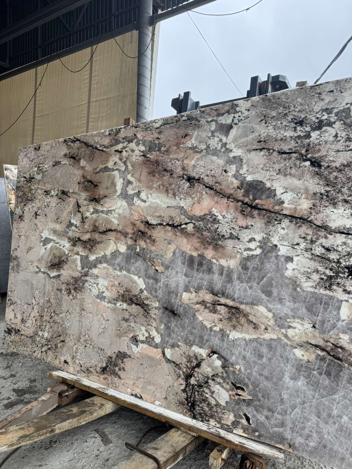 Мягкие, приглушенные розовые оттенки (от бледно-розового до насыщенного пудрового).Теплые землистые тона, включая бежевый, светло-коричневый и кремовый. Смелые вкрапления черного и темно-серого цвета, а также медные прожилки, которые создают динамичный рисунок. Камень обладает легкой прозрачностью в некоторых зонах, что позволяет использовать его с подсветкой для создания глубокого, светящегося эффекта.