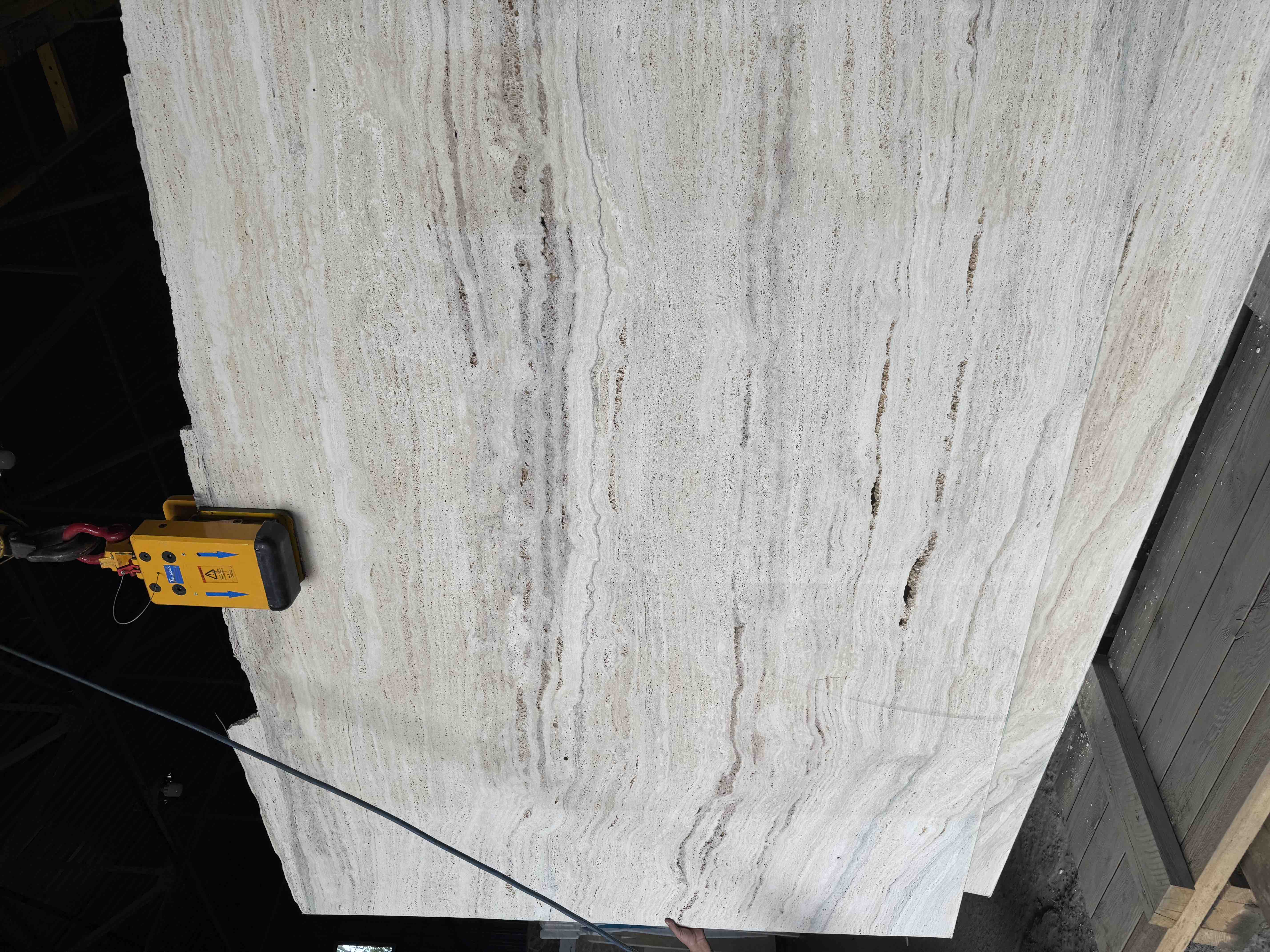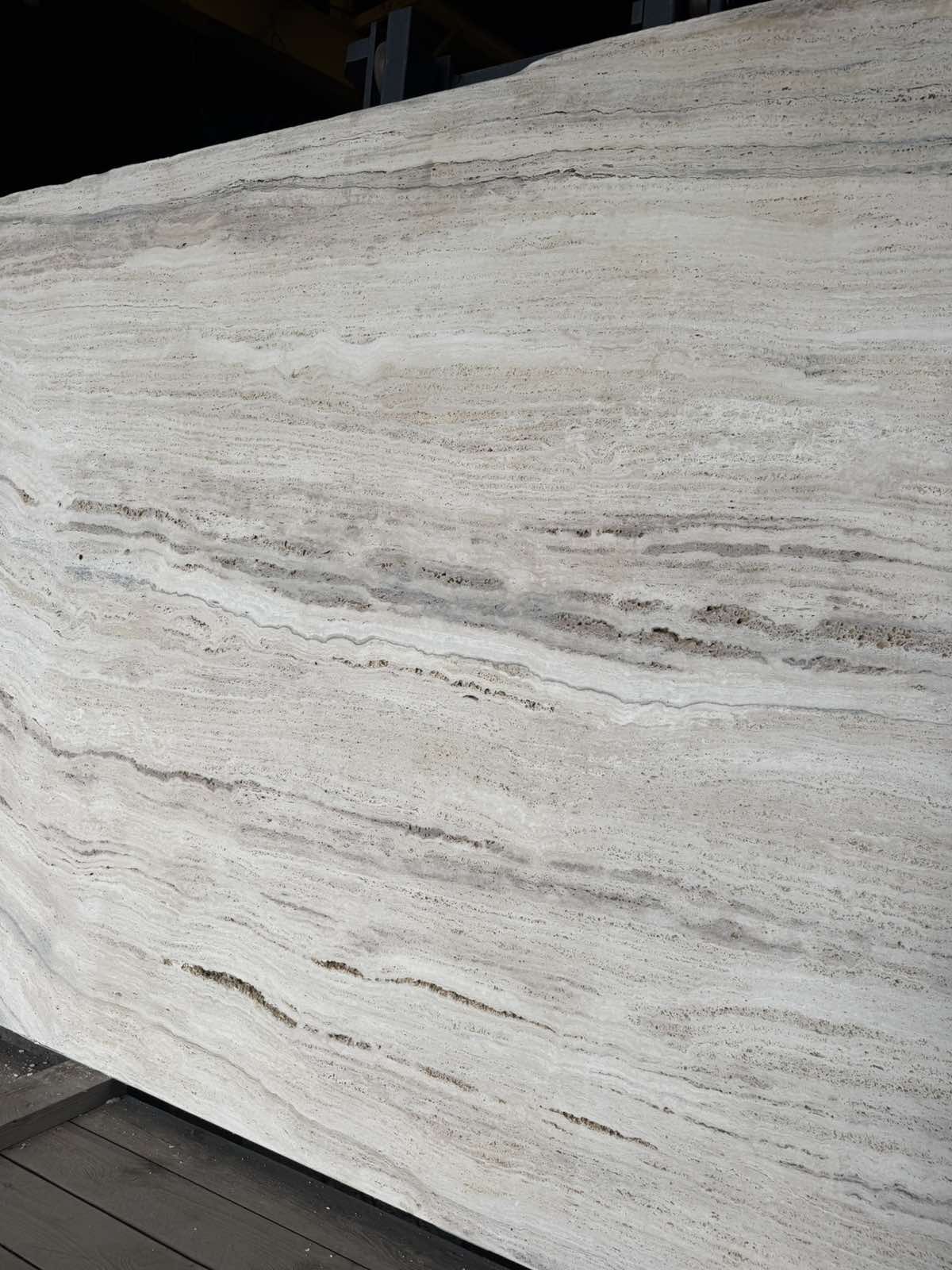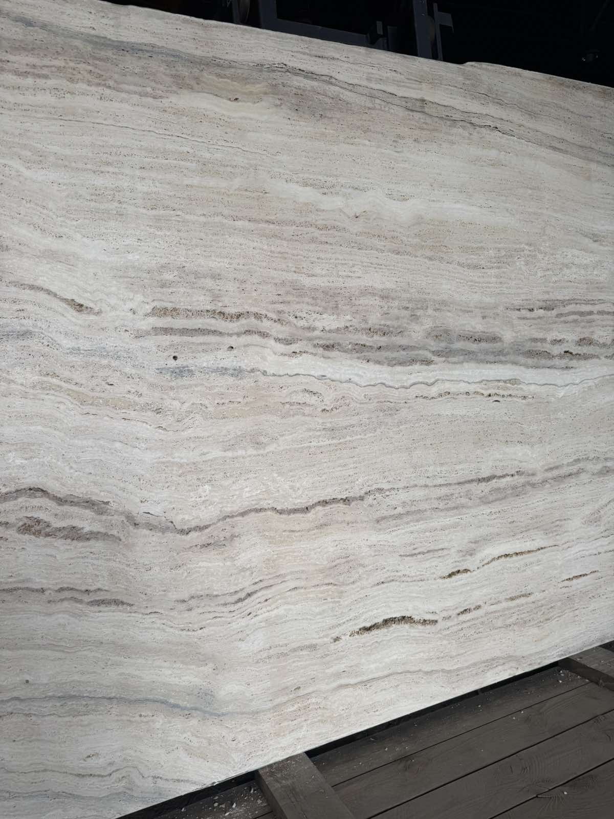 Разнообразие: В зависимости от карьера могут встречаться желтовато-серые и буровато-серые вариации. Пористость - это главная особенность травертина. Камень имеет ячеистую структуру с множеством мелких каверн (пустот), образованных из-за выхода пузырьков газа в процессе формирования породы. Несмотря на поры, это достаточно прочный и легкий в обработке материал, который хорошо поддается шлифовке.
