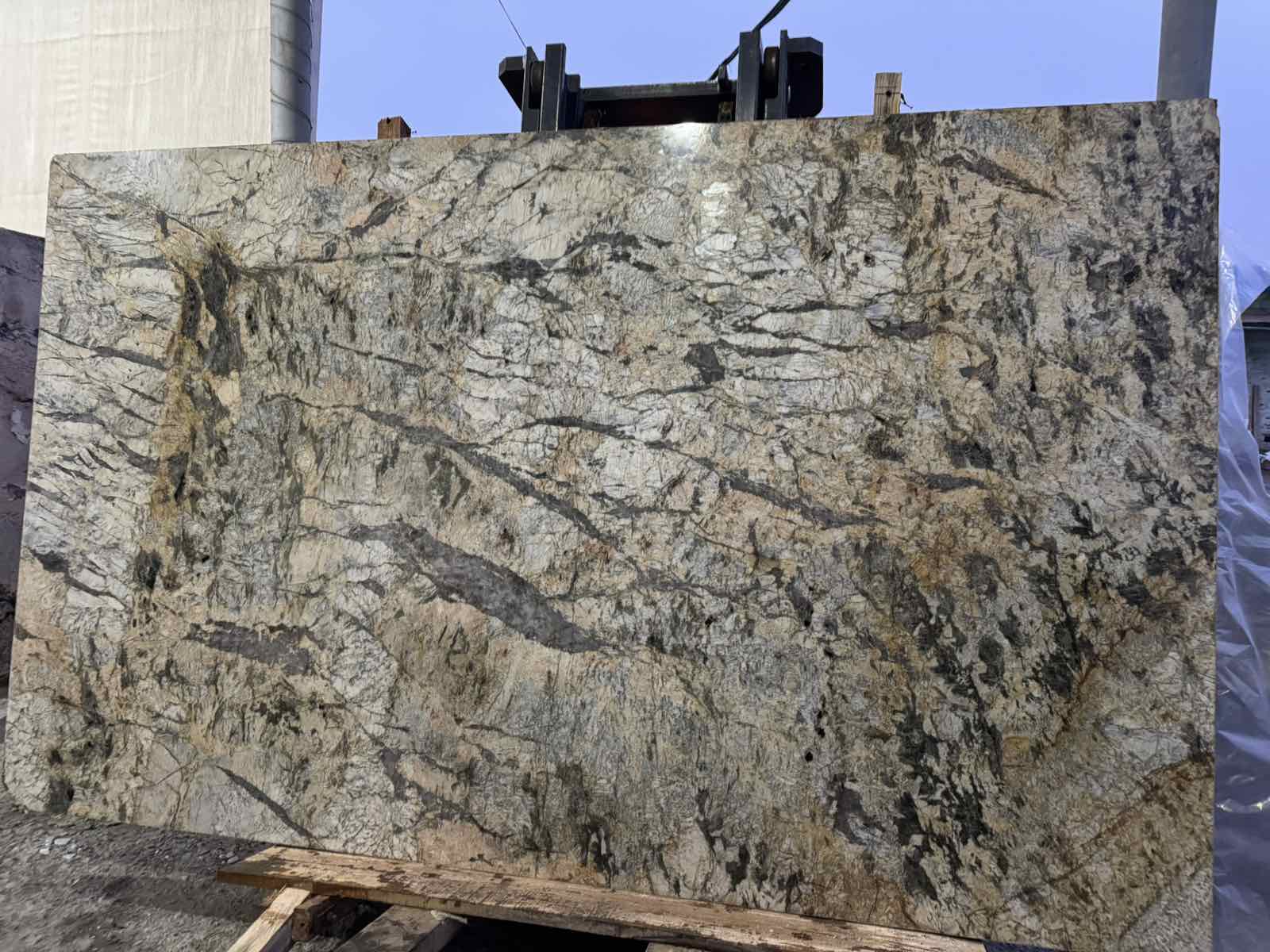 Зовнішній вигляд: Основа варіюється від світло-жовтого до насиченого золотистого кольору із вкрапленнями сірого, бежевого та темних мінералів.