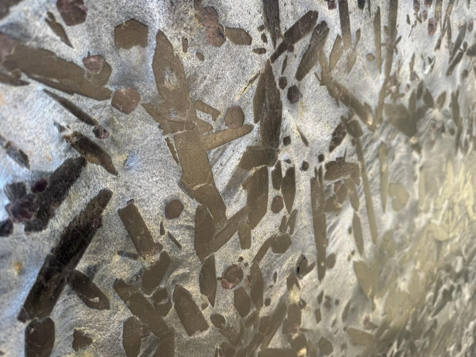 Кварцит Meteorus – це екзотичний натуральний камінь родом із Бразилії. Він цінується за свій драматичний вигляд, що нагадує нічне небо з падаючими метеоритами.