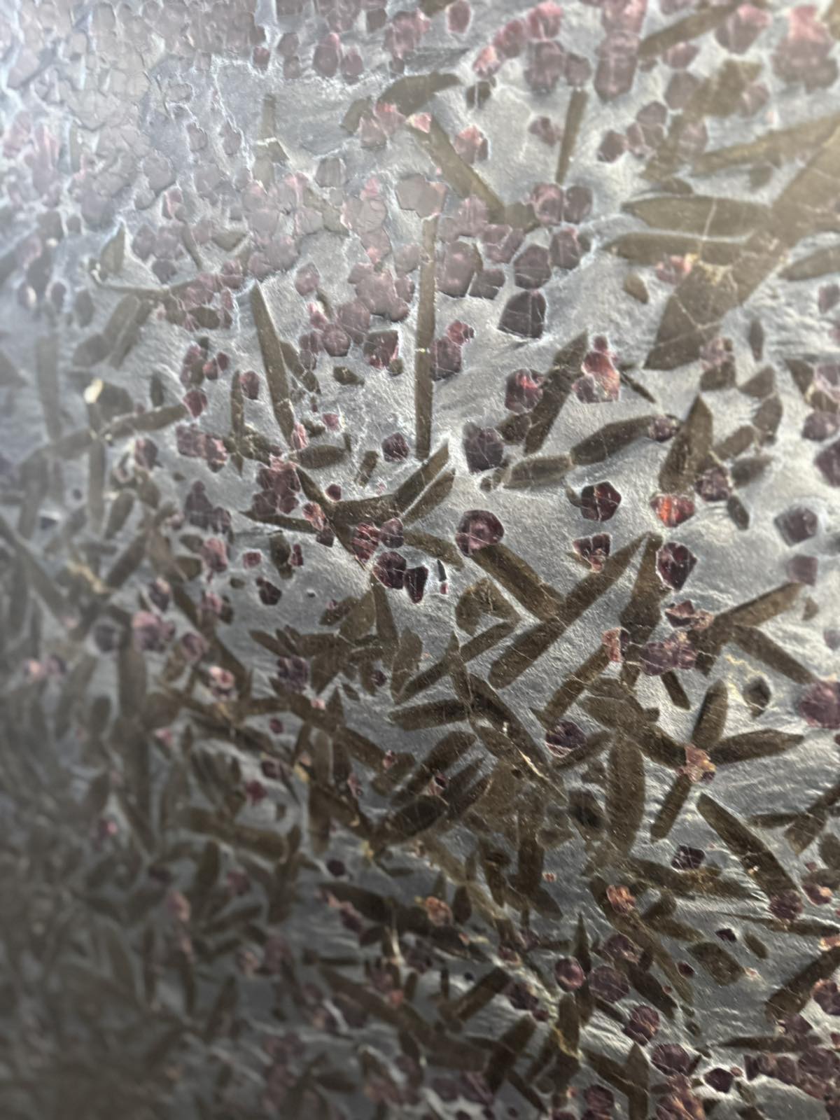 Особливою акцентою: Характерною рисою є вкраплення червоного гранату. Ці напівпрозорі «камені» всередині слеба створюють ефект свічення, особливо якщо використовувати декоративне підсвічування ззаду. Також можуть зустрічатися коричневі та бордові відтінки.