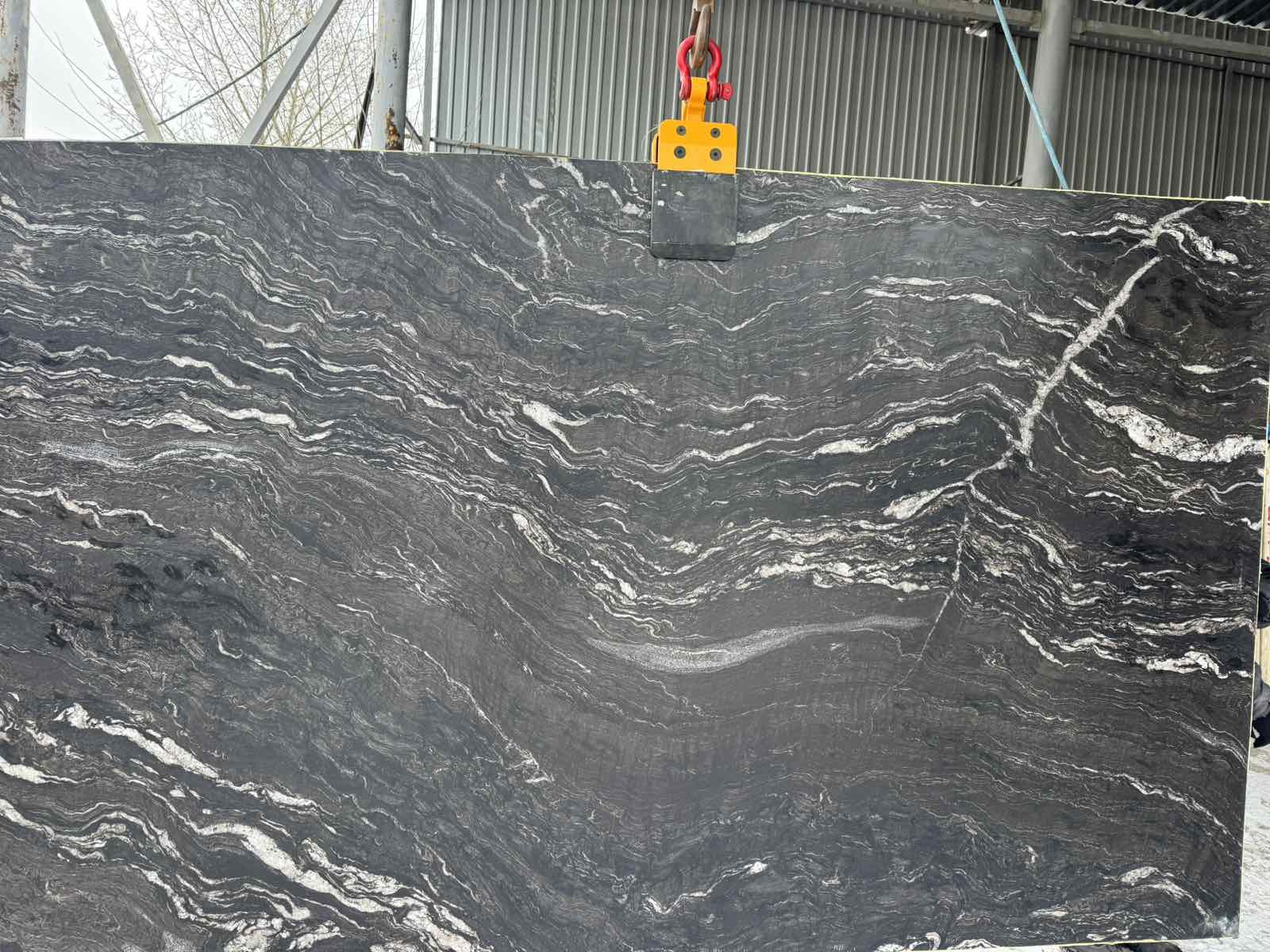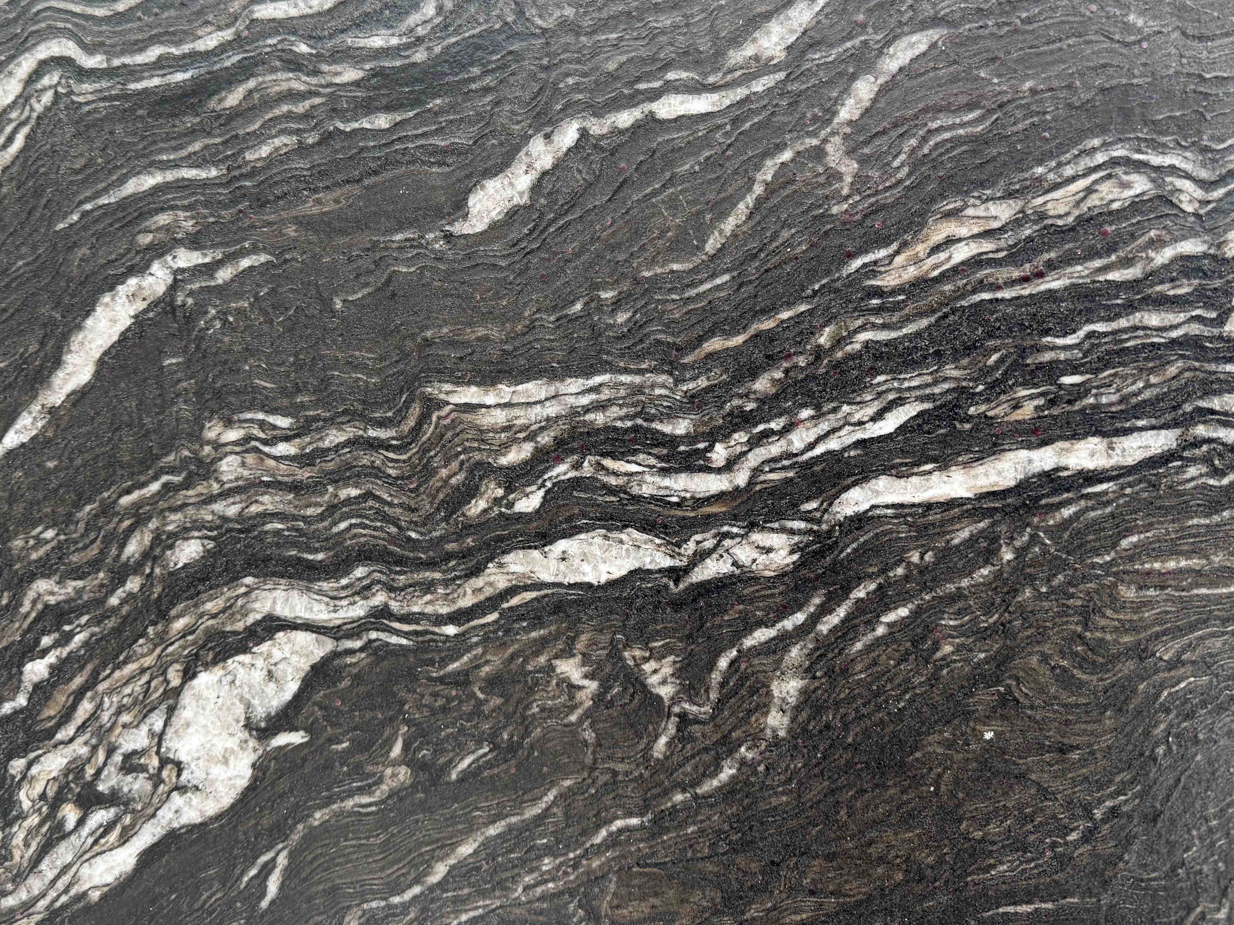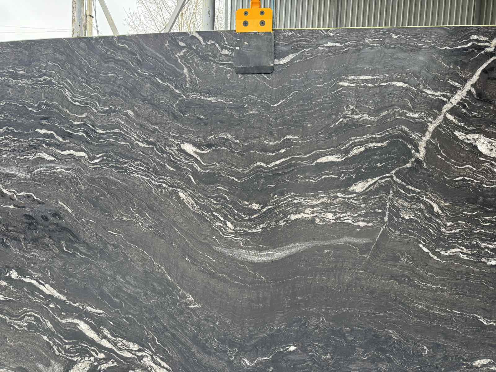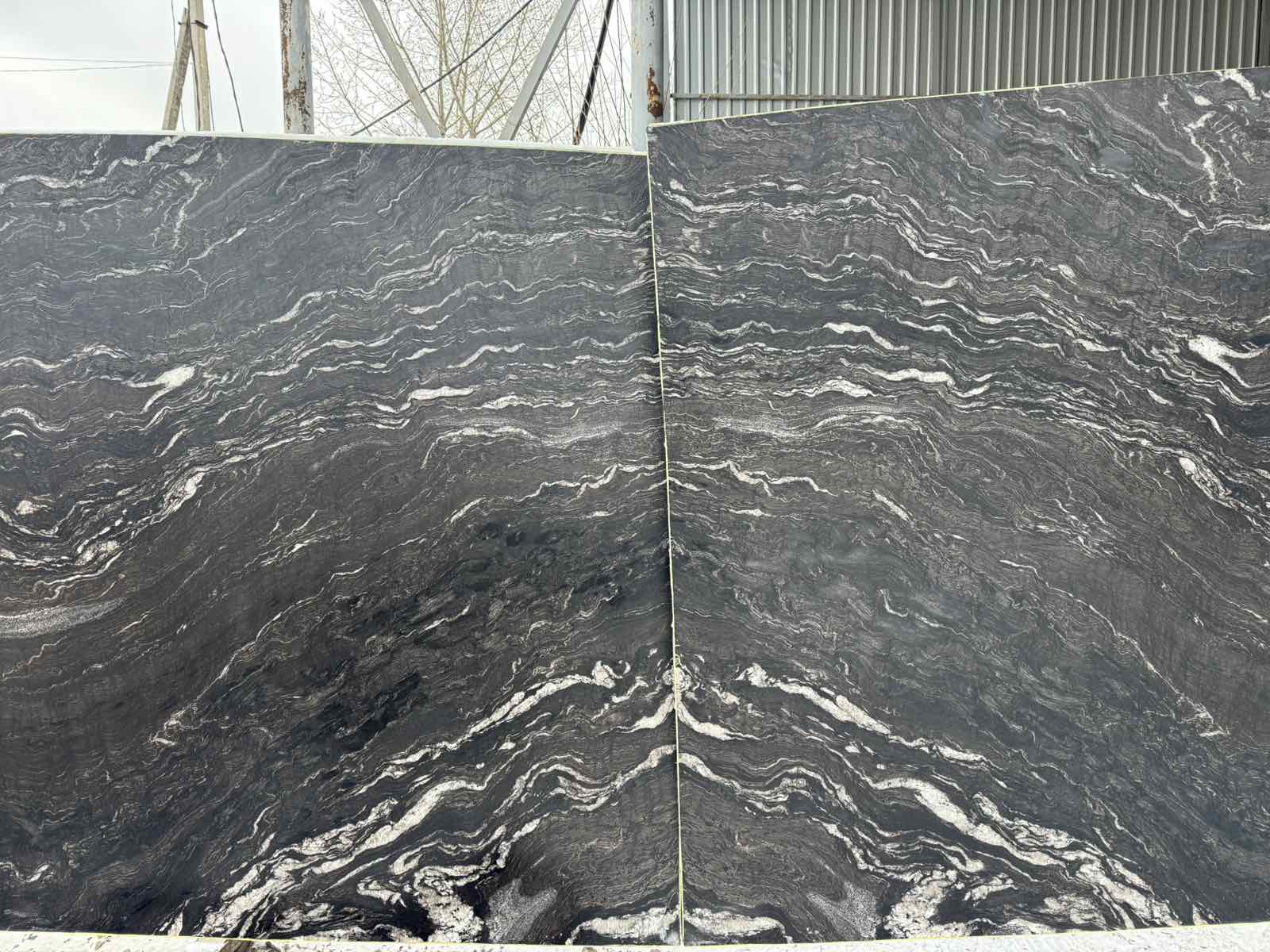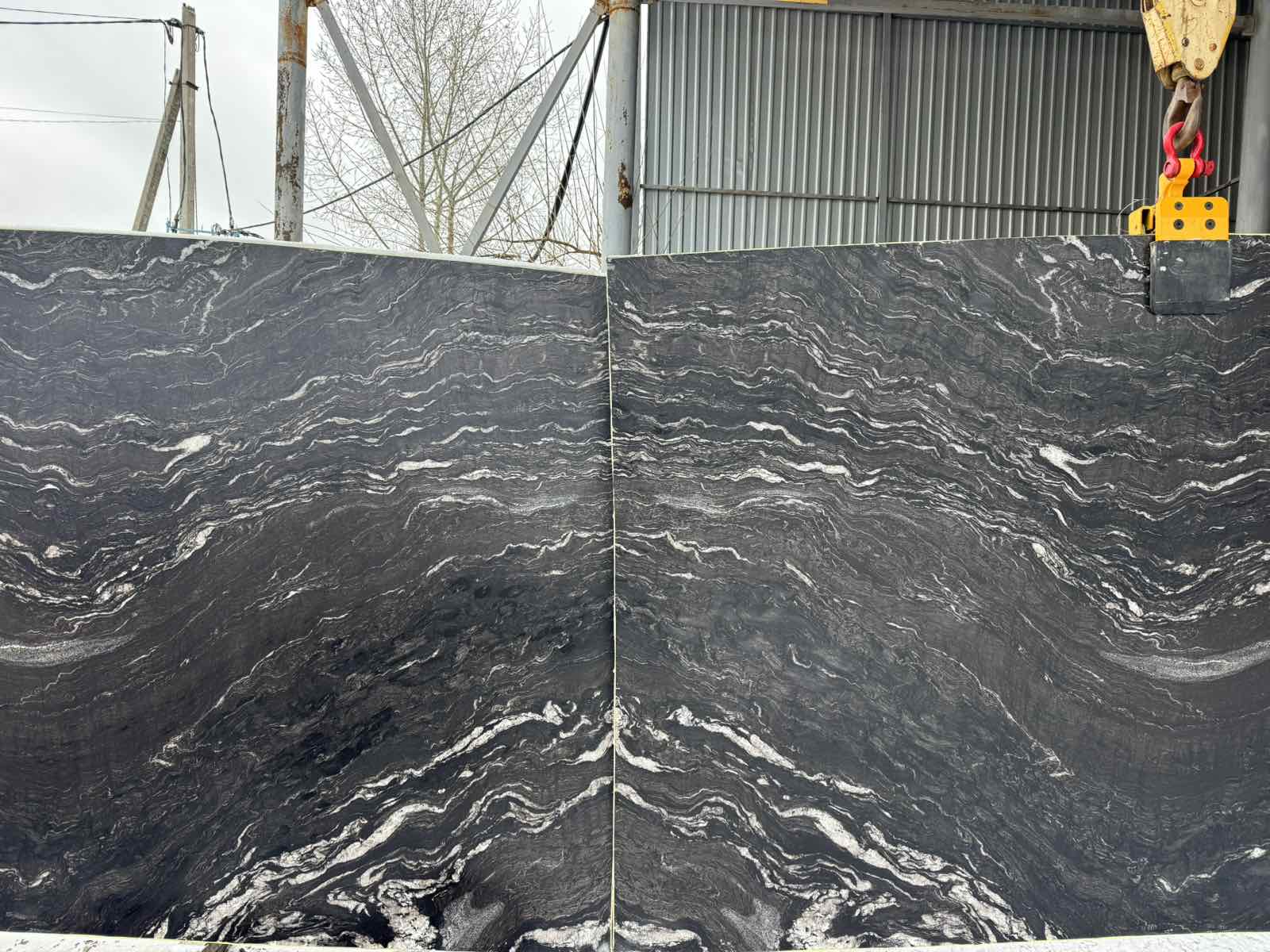 Колір: Основний фон – насичений чорний. По ньому проходять виразні білі та світло-сірі "стріли" або прожилки, які створюють ефект спалахів блискавок.