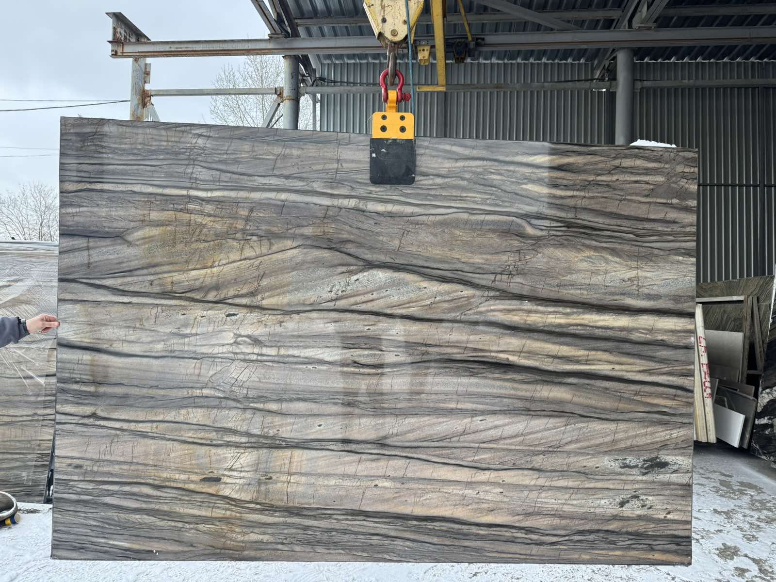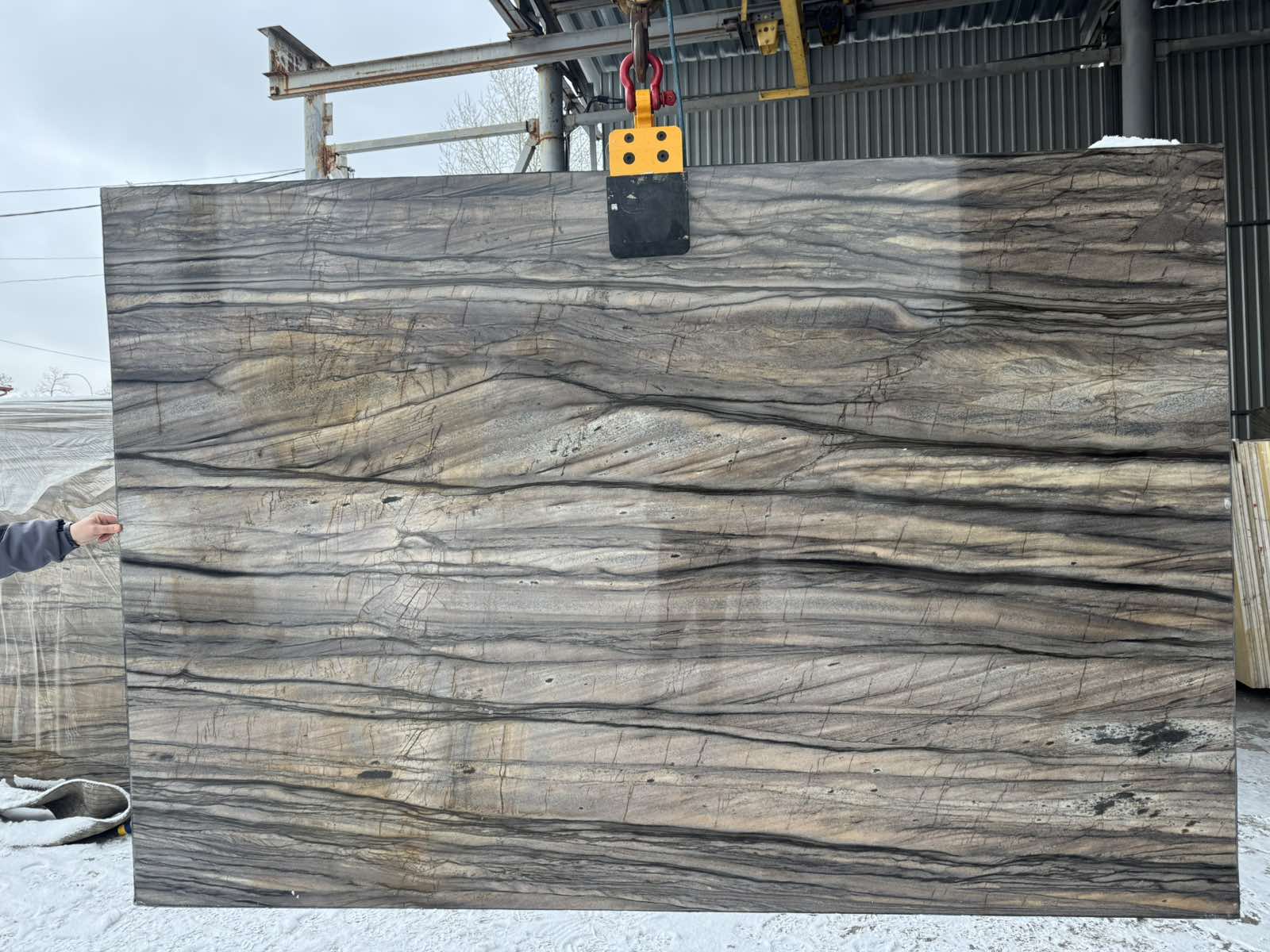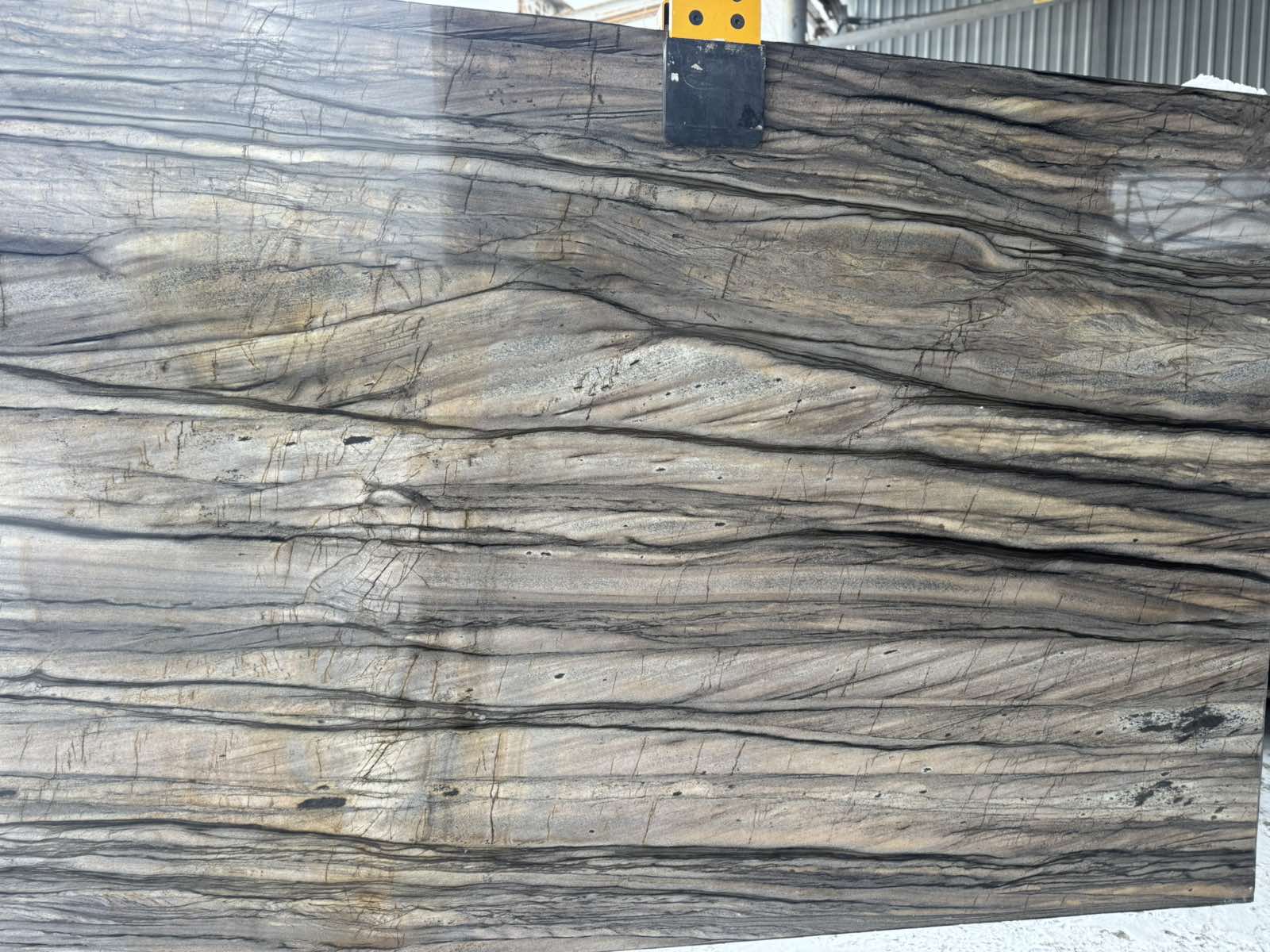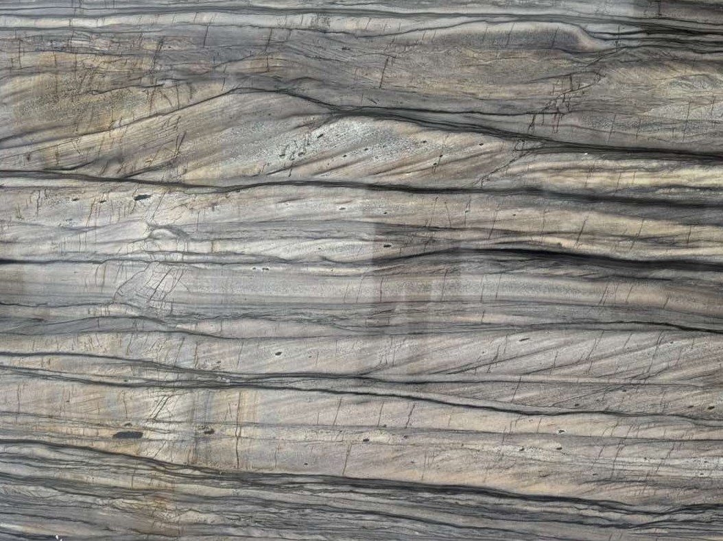 Кварцит Sandalus – це естетика природи, втілена у камені. Багата палітра кольорів варіюється від теплих кавових до насичено-коричневих тонів, створюючи ефект зрізу рідкісного благородного дерева. Поздовжні лінії, що проходять крізь усю поверхню, нагадують текстуру деревних волокон, а тонкі темні прожилки додають глибини та візуальної динаміки. Малюнок не тільки візуально привабливий, але й має природну цілісність, ніби створений для втілення гармонії в інтер'єрі.