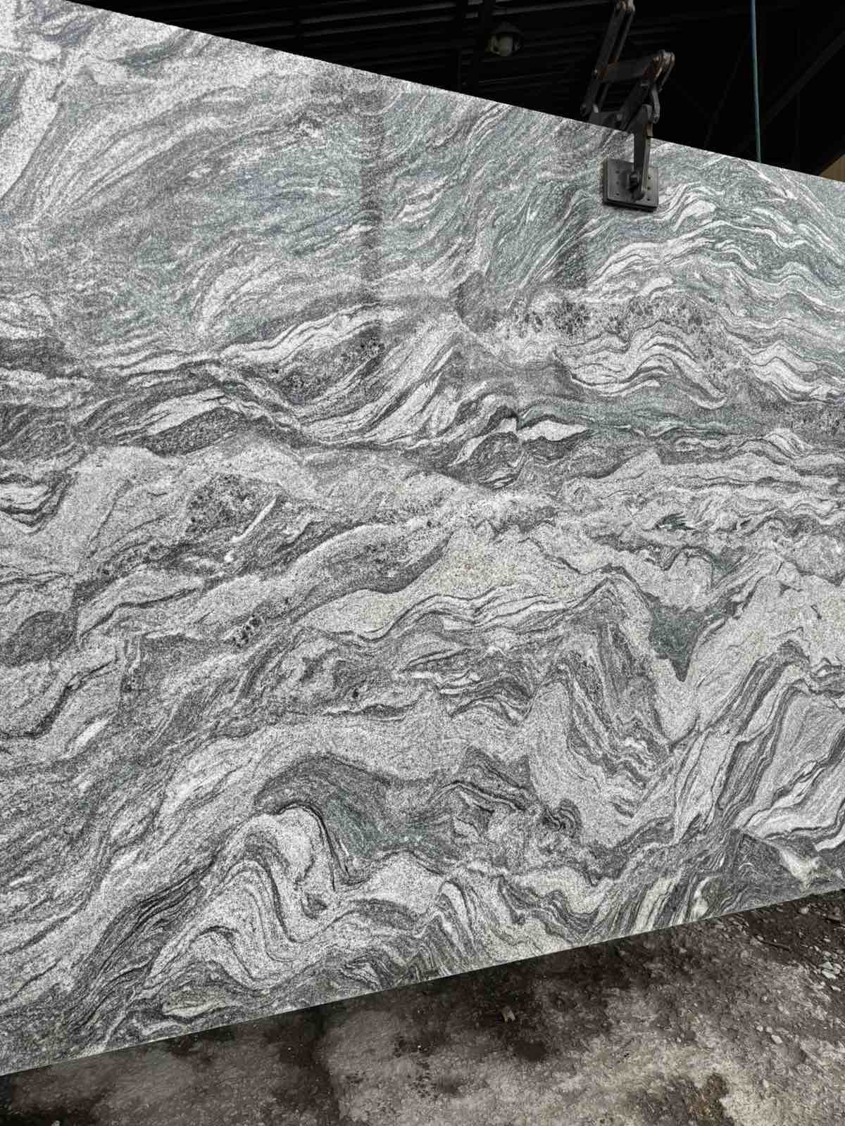 Гранит Viscount White часто используют в сочетании с темными породами камня для создания контрастных дизайнерских решений. Это позволяет подчеркнуть светлую и элегантную текстуру Viscount White, выделяя его на фоне темных оттенков других материалов. Такой подход создаёт яркие акценты и делает пространство более выразительным.