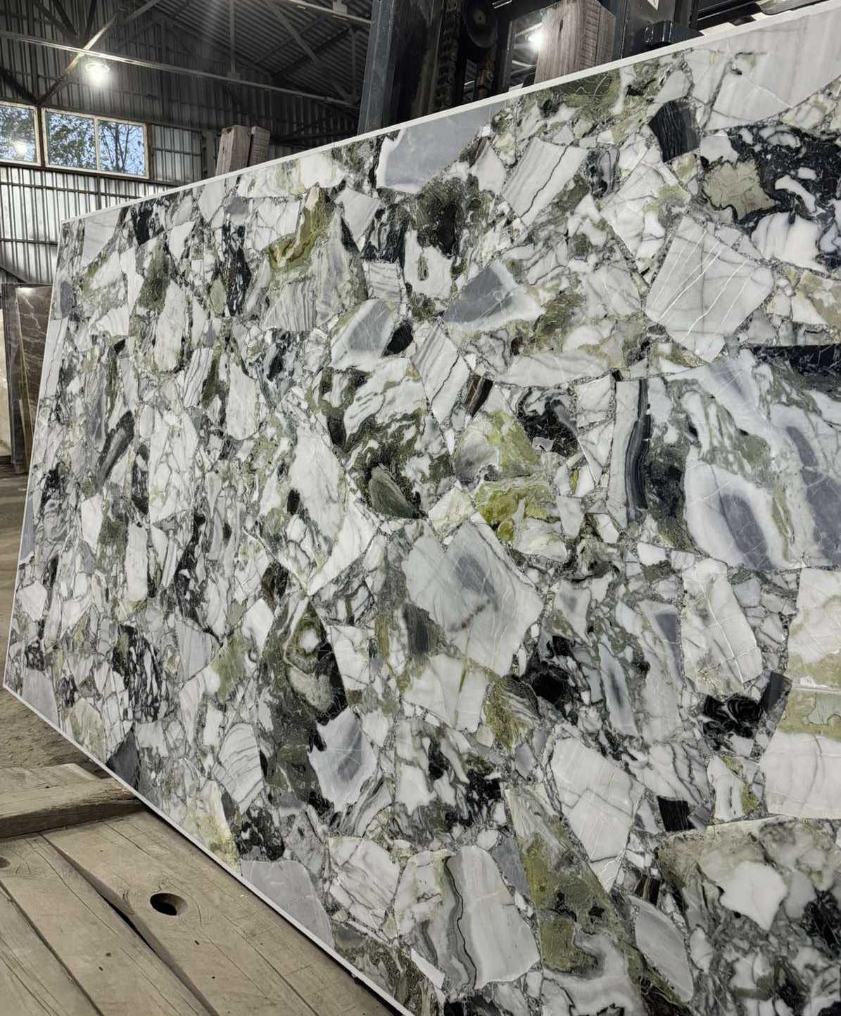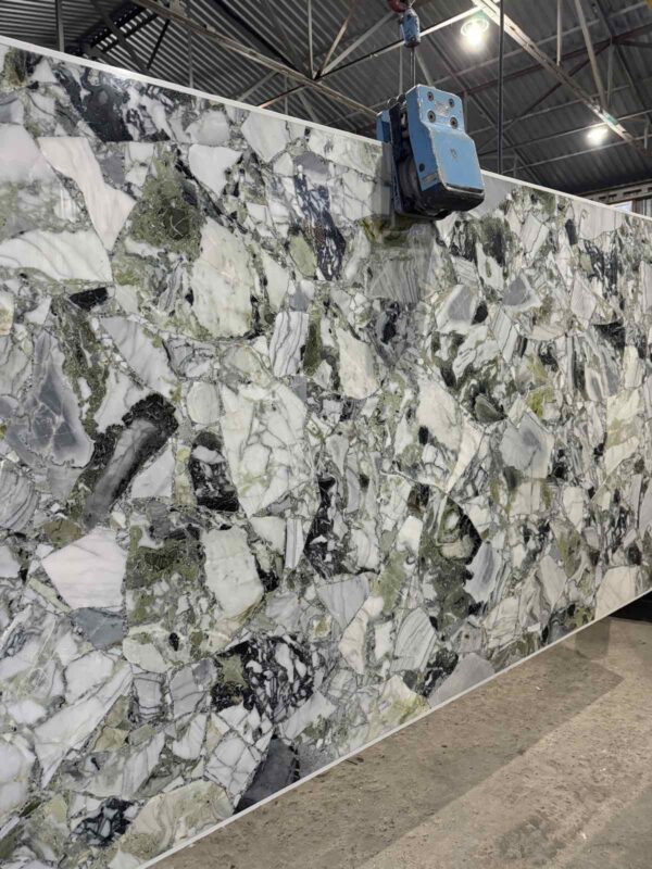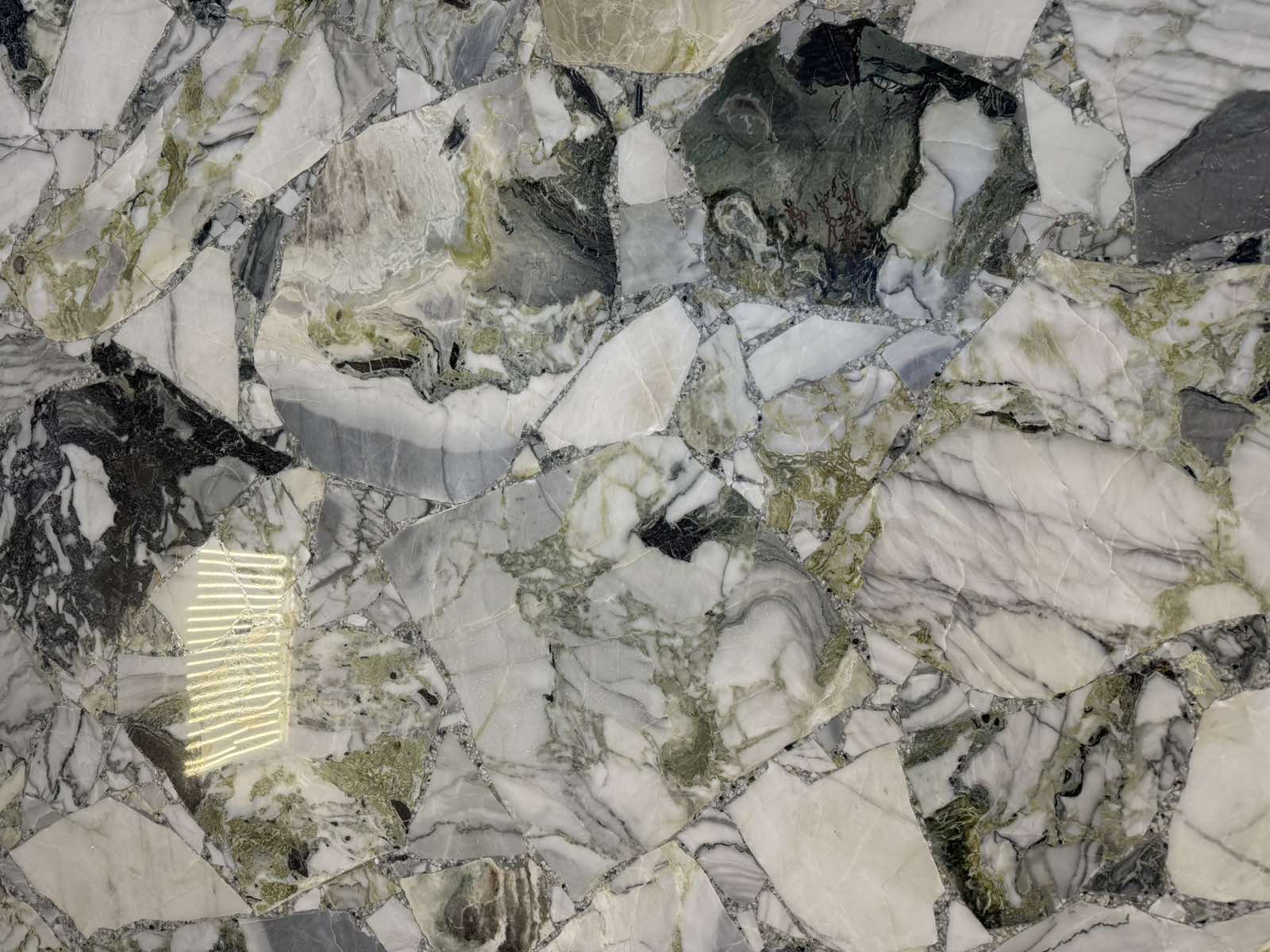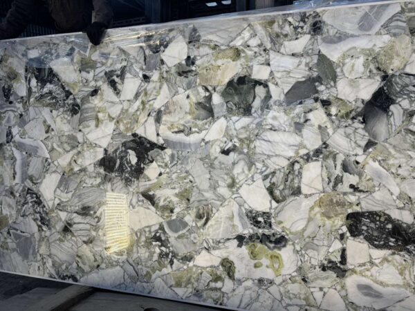 White Beauty – это благородный мрамор, который поражает своей выразительной цветовой палитрой и контрастными прожилками. На белоснежной основе эффектно переплетаются темные и зеленоватые линии, создающие впечатление динамичного, почти художественного рисунка. Благодаря такому сочетанию камень выглядит по-настоящему роскошно и становится акцентом в любом интерьере.